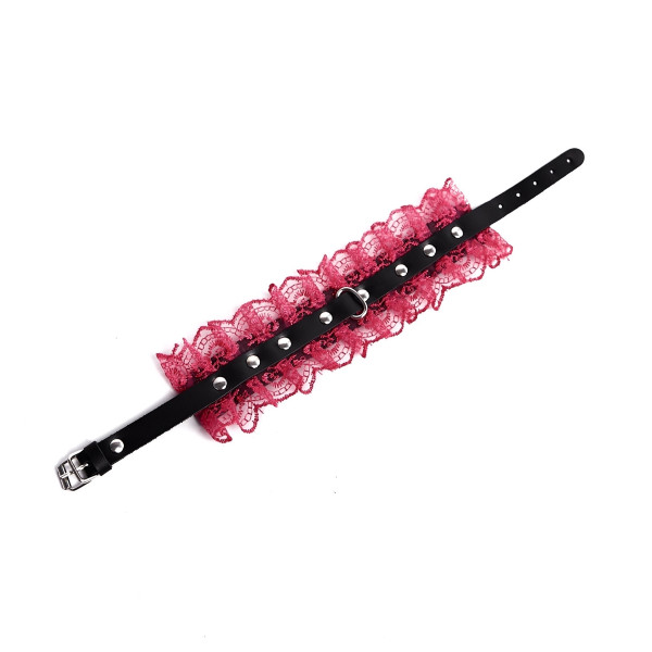 Ошейник выполнен из натуральной кожи и декорирован роскошным кружевом цвета фуксии! Сочетание кожи и кружева придает образу особенный шарм и выглядит мега провокационно!
