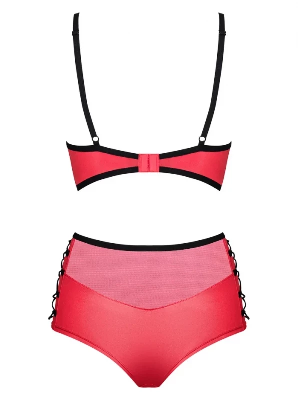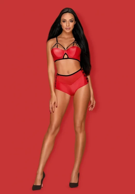 Комплект "Obsessive Leatheria" лиф-бра и высокие трусики, красный, L/XL