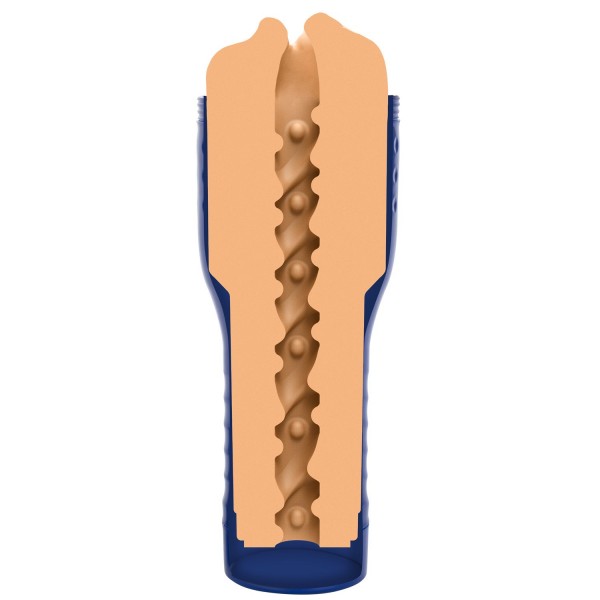 Мастурбатор помещен в стильный тубус синего цвета. Тубус имеет особенный рельеф, который позволяет надежно удерживать девайс в руке во время самых интенсивных фрикций! Тубус плотно закрывается крышкой. В основании также находится крышка, открыв которую Вы ощутите более свободные фрикции. При закрытой нижней крышке ярко ощущается посасывающий эффект!